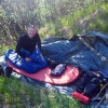 Tehát ismét elindultunk felderíteni a terepet. Ilyenkor megterveztük, hol segítjük egymást, melyik kerékvágásból hol érdemes átváltani a másikba. Vicces talán, de szinte minden métert át kellett gondolni. A növényzet ritkult, tudtuk már igazán közel vagyunk a tetőhöz, nem csapott be bennünket a GPS, amivel szorgalmasan rögzítettük a tracket. Emléknek. A motorokat félre sem állítottuk, ha előre mentünk az útról, egyrészt mert nem volt hová, másrészt igen kicsi volt a valószínűsége, hogy valaki arra jár. Rászántuk hát az időt, hogy egész addig bandukoljunk, amíg motorozható terepre nem érünk, azaz szinte a csúcsig bandukoltunk fel. Ezután visszatértünk a motorokhoz. És beütött a krach, a Yamaha kuplungja felmondta a szolgálatot. Az utolsó nekirugaszkodásnál éreztem, hogy kezd csúszni a kuplung, de bíztam benne, hogy kibírja a kb. 1 km-t, ami még hátravolt. Igaz ez szintben 150 métert jelentett. Nem bírta.