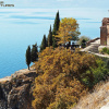 Másnap reggel aztán irány Ohrid! Az előző napi eltévedést és fogvacogást bőven kárpótolta az élmény. A P504-es út a Galichica Nemzeti Parkon keresztül vezet át a másik tó partjára, nagyon ajánlom mindenkinek, aki erre jár. 2 euró a behajtás díja, amit ugyan kifelé kellett megfizetni, de abszolút megérte. Találhatók itt táborhelynek alkalmas placcok is, és nagyszerű a panoráma az Ohridi-tóra.