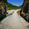 Az e napi szakasz volt az egyetlen, ahol eddig nem jártam, mivel Corovode és Permet között van másik út is. Út közben megálltunk az Osumi itteni rafting beszállóhelyénél inni egy vizet. Dél körül járt az idő, az ide épített kalyiba/étterem (tavaly még nem volt itt) tulaja kissé még kótyagos volt az előző estétől. A parton sátrak is álltak a tűző napon, azt megállapíthattuk, hogy annyira nem lehet berúgni, hogy abban még emberek legyenek. Legalábbis élő emberek.